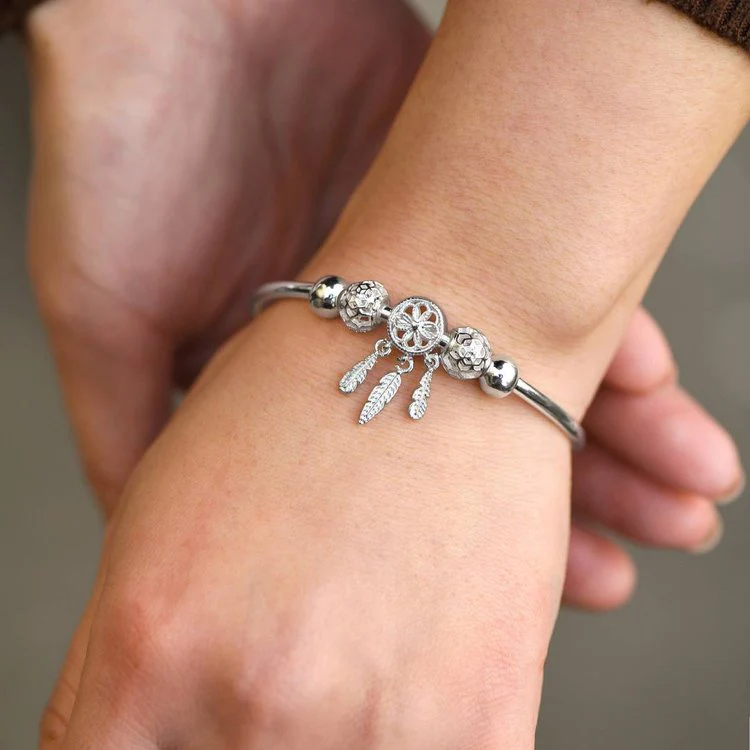 The incredibly unique Sterling Sliver Charm Bracelet looks gorgeous and will have everyone asking where you found such a unique and stunning bracelet. Our dreamcatcher charm bracelet is made entirely of S925 sterling silver.